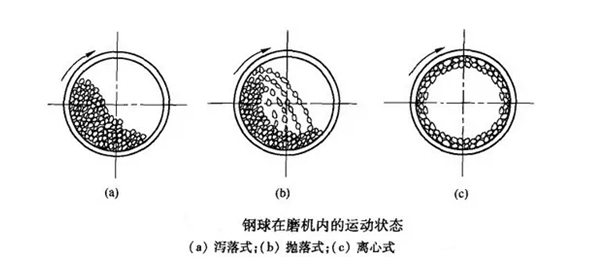 球磨機(jī)是選礦設(shè)備中常用的設(shè)備之一。轉(zhuǎn)速是球磨機(jī)設(shè)計(jì)和操作的主要參數(shù)之一,轉(zhuǎn)速大小直接決定著筒體內(nèi)磨礦介質(zhì)的運(yùn)動(dòng)狀態(tài)和磨礦作業(yè)的效果。轉(zhuǎn)速過快或過慢都會(huì)減弱或失去粉碎作用。本文介紹不同轉(zhuǎn)速下不同的磨礦作用效果。