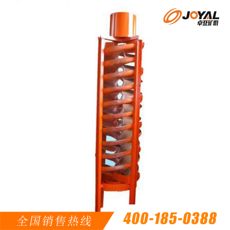 螺旋溜槽的螺旋槽的設(shè)計(jì)材料為玻璃鋼,并且螺旋槽的內(nèi)表面還涂有耐磨材料,保證了螺旋溜槽的耐磨性以及較長(zhǎng)的使用周期。并且還可以根據(jù)用戶(hù)的具體需要,做成不同的層數(shù)。一般常用的有單頭,雙頭,三頭以及四頭等幾種不同的結(jié)構(gòu)。