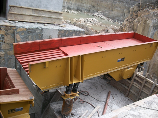 振動(dòng)給料機(jī)是一種常用的給料設(shè)備,在生產(chǎn)中可以將塊狀或顆粒狀的物料均勻、連續(xù)的送至受料設(shè)備,是整條生產(chǎn)線的一道工序。其后經(jīng)常跟顎式破碎機(jī)破碎,振動(dòng)給料機(jī)的工作效率不僅對(duì)顎破的產(chǎn)能有重要影響,對(duì)整條生產(chǎn)線的生產(chǎn)效率也有影響。