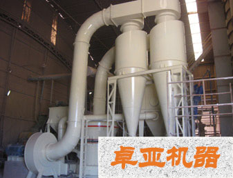 充分研磨后的物料,經(jīng)收塵器收集,用空氣輸送斜槽、提升機等輸送設備送入成品庫中儲存。
