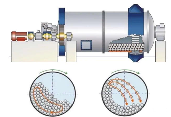 球磨機(jī)是選礦設(shè)備中常用的設(shè)備之一。轉(zhuǎn)速是球磨機(jī)設(shè)計(jì)和操作的主要參數(shù)之一,轉(zhuǎn)速大小直接決定著筒體內(nèi)磨礦介質(zhì)的運(yùn)動(dòng)狀態(tài)和磨礦作業(yè)的效果。轉(zhuǎn)速過快或過慢都會(huì)減弱或失去粉碎作用。本文介紹不同轉(zhuǎn)速下不同的磨礦作用效果。