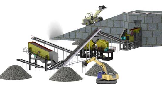 反擊式破碎機,二級破碎,可對抗壓強度不超過350MPa的各種礦石、巖石(如花崗巖、大理石、石灰石)等物料進行粗、中、細碎作業(yè)。